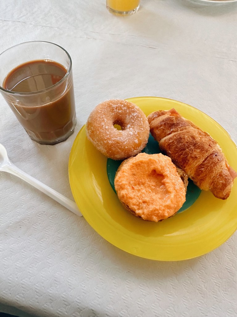 The school day begins at 9 am and ends at 2 each day. While at school, all of the students and teachers have a communal recess from 11:15-11:45. During this break the delightful kitchen staff prepares an array of pastries, sandwiches, and the staple of tomato spread with toast, pan con tomate. There is also coffee, tea and a variety of juices that are served. This is JUST for the teachers. In this time, teachers switch off with one another, allowing for an extended break without supervision duties.