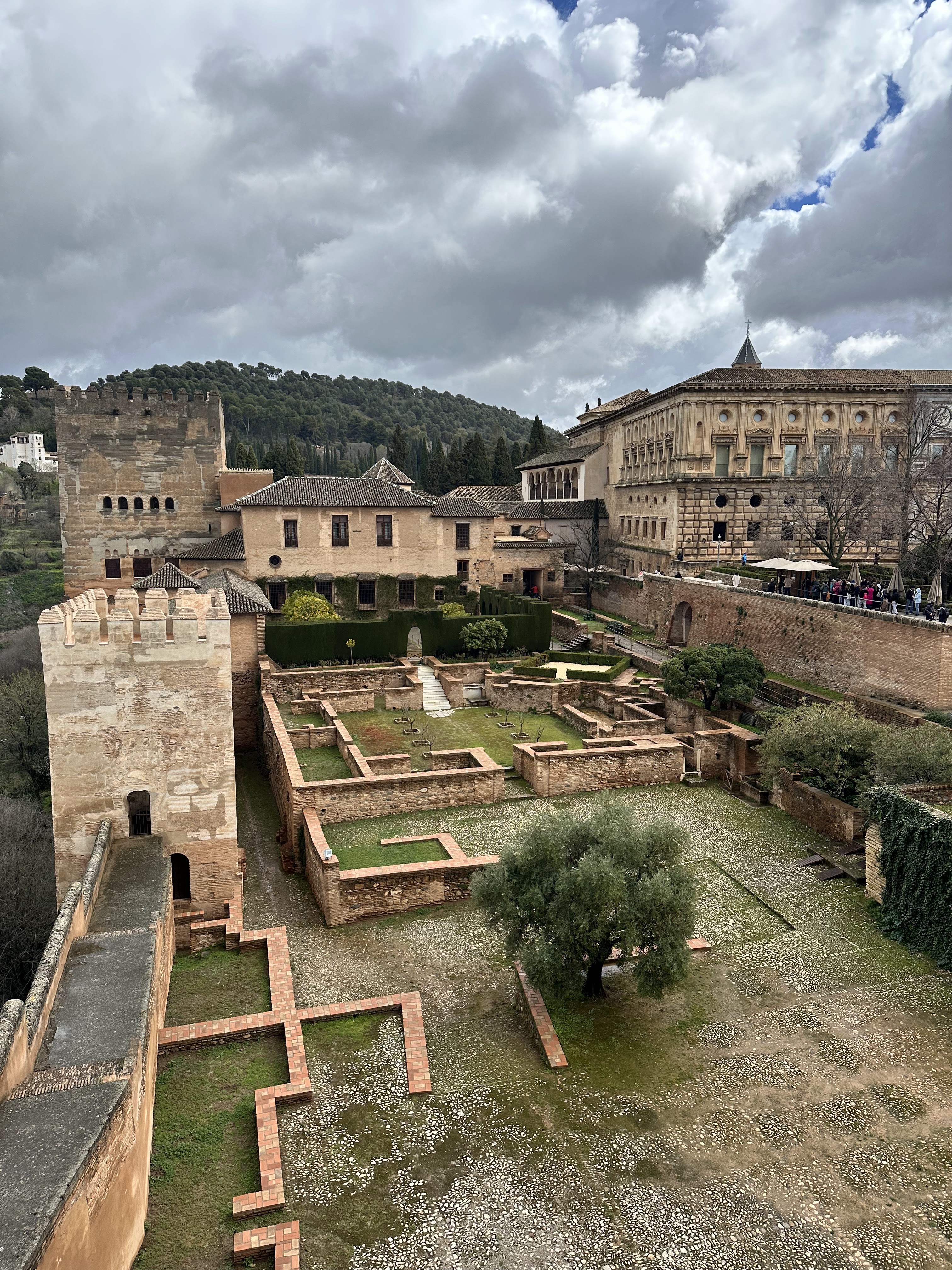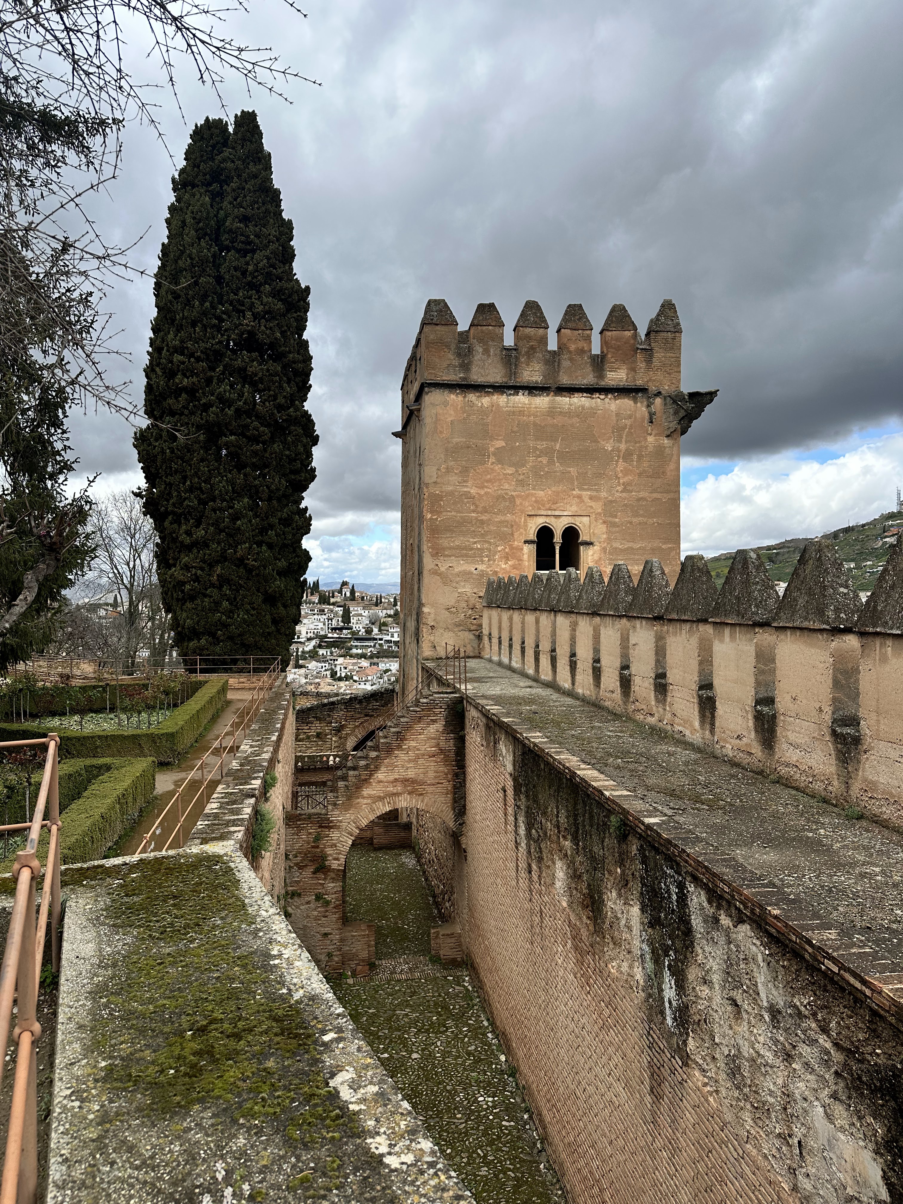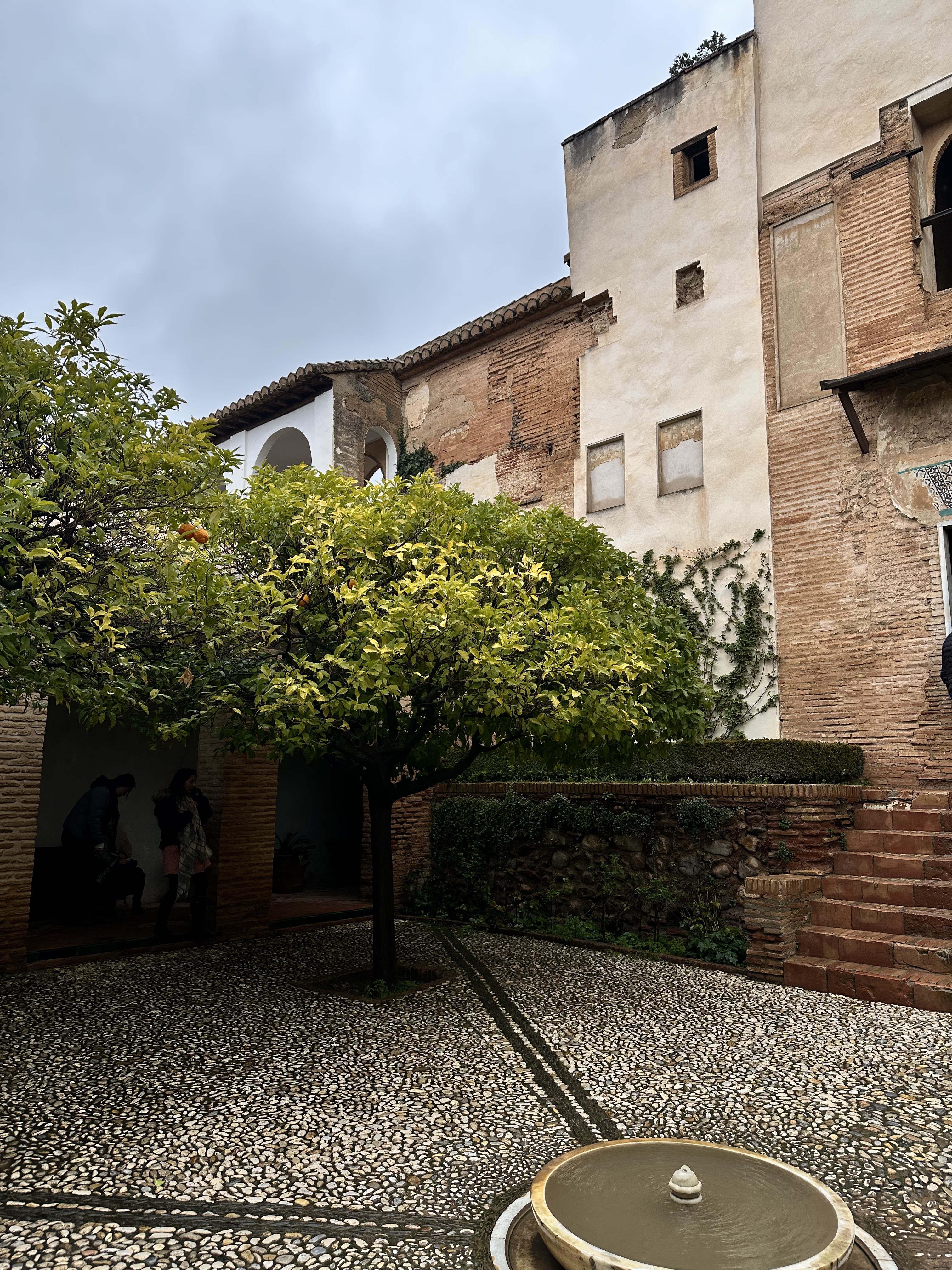 Following the Generalife, we visited La Alcazaba, which formerly housed the Royal guard. Here there were multiple towers from which you could see the entirety of the city. We even spotted the tea shop we dined at the previous day. Unfortunately, because of our tickets, we were unable to visit the Nasrid Palaces, which feature some of the best parts of the fortress. The tour took about 3-4 hours even without the palaces, and by the end I was damp and quite chilly as I had underestimated the temperature when packing. We were in desperate need of food and a warm place to sit. We exited the Alhambra and found a nice place to grab a small bite to eat. We wanted to keep it relatively light since Christian had made us reservations at a Moroccan restaurant that evening at 8:30.