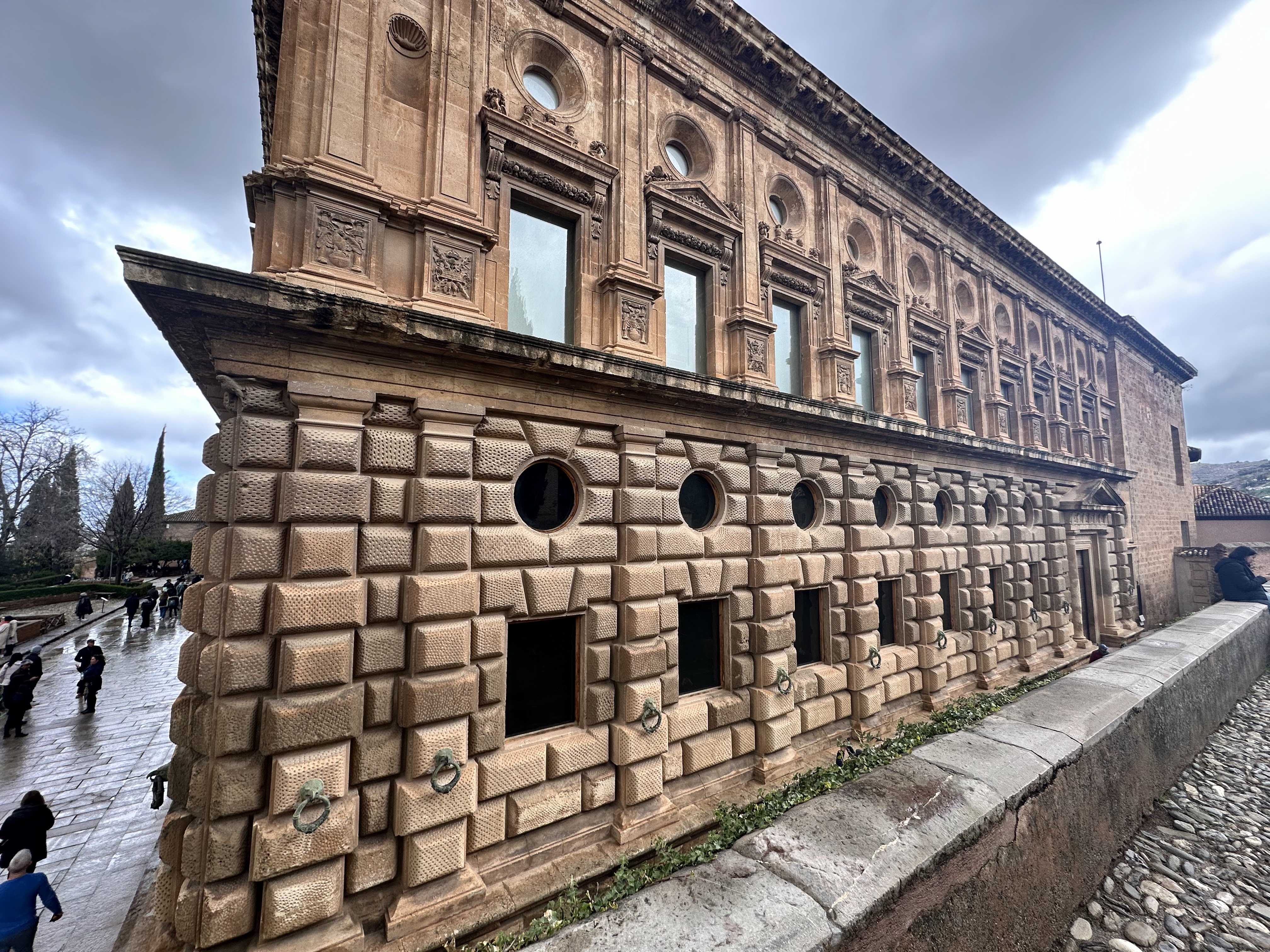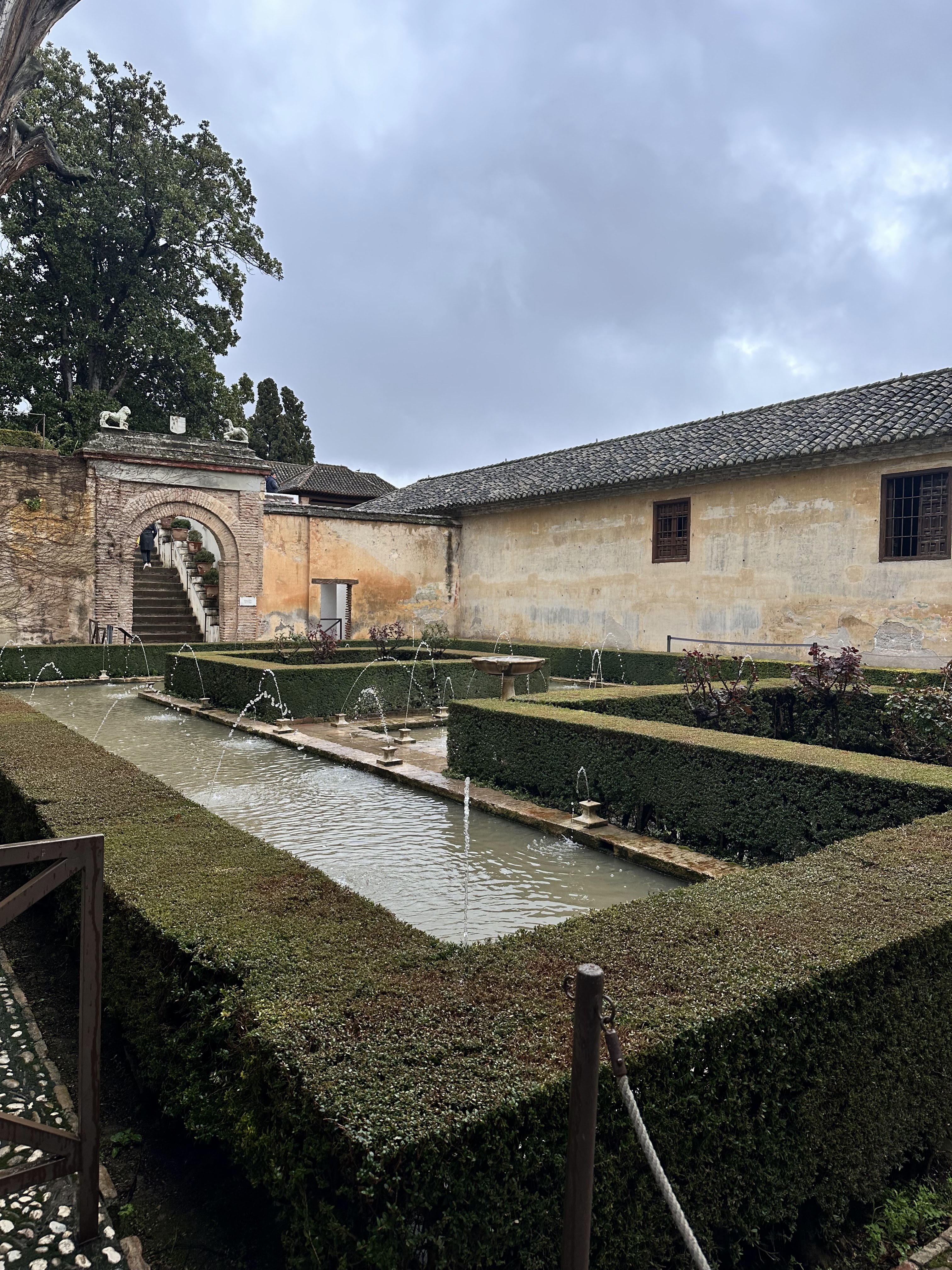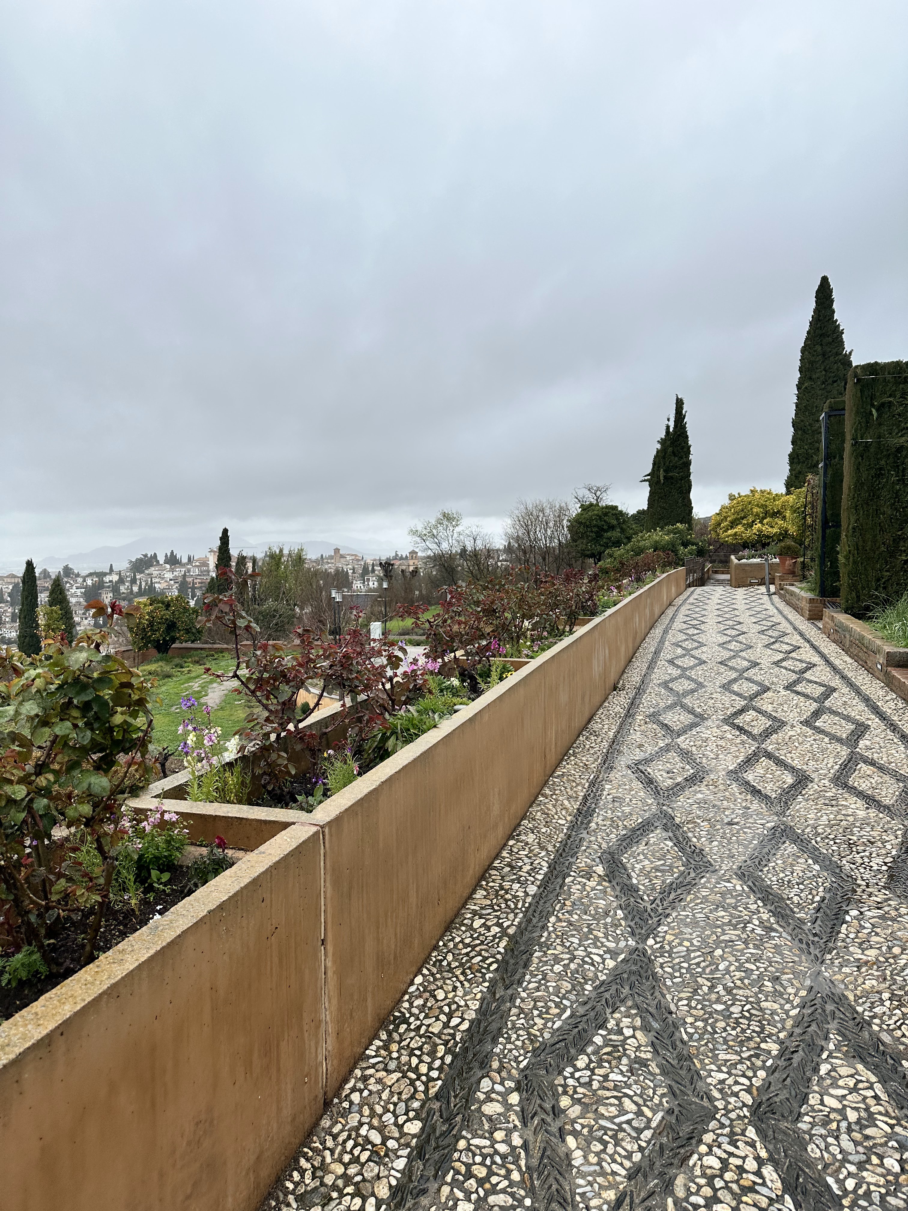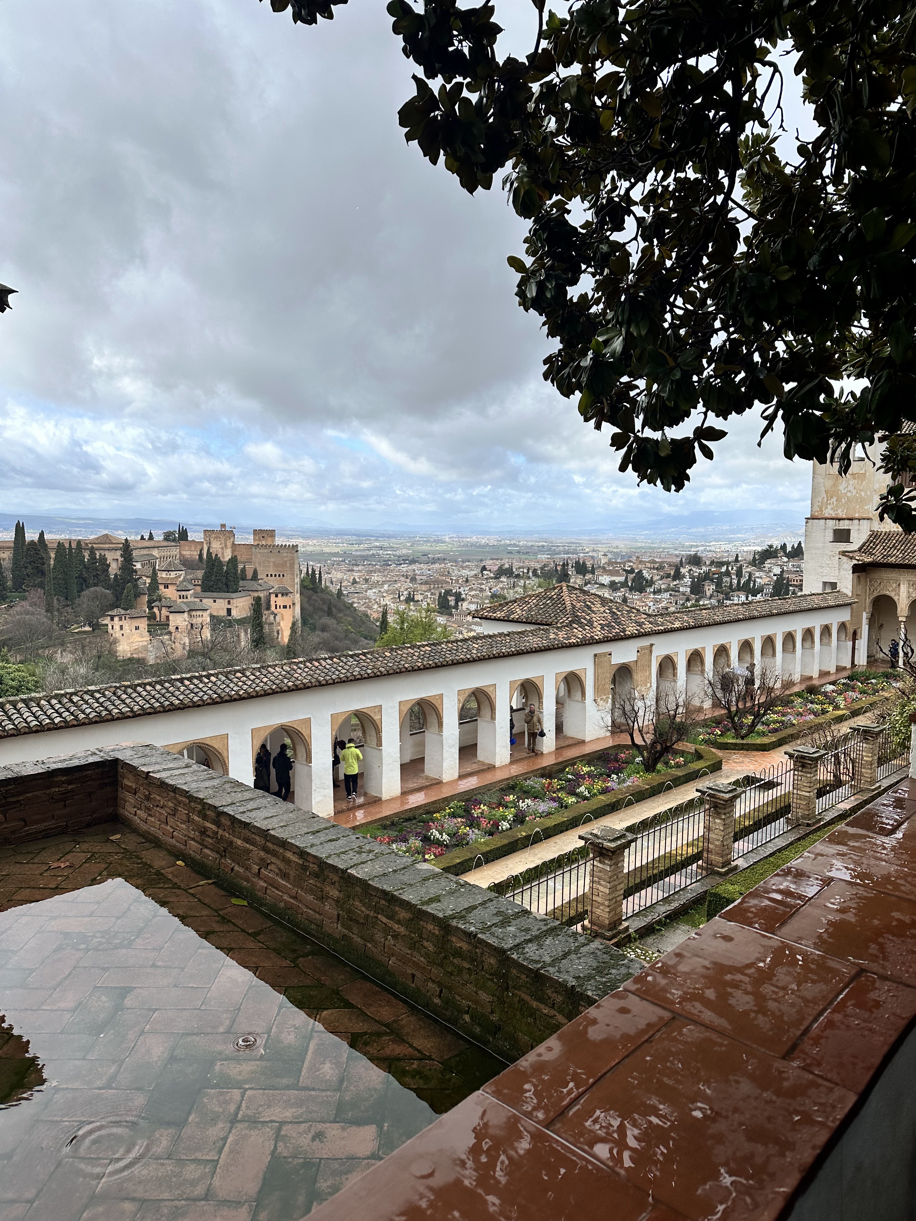 After successfully stowing our luggage (two backpacks) and finding a place to lay out my pants, we started our walk to the Alhambra. Surprise, surprise, it was still raining. As the Alhambra is perched on a hill, we had a long and slightly sweaty uphill journey to reach it.