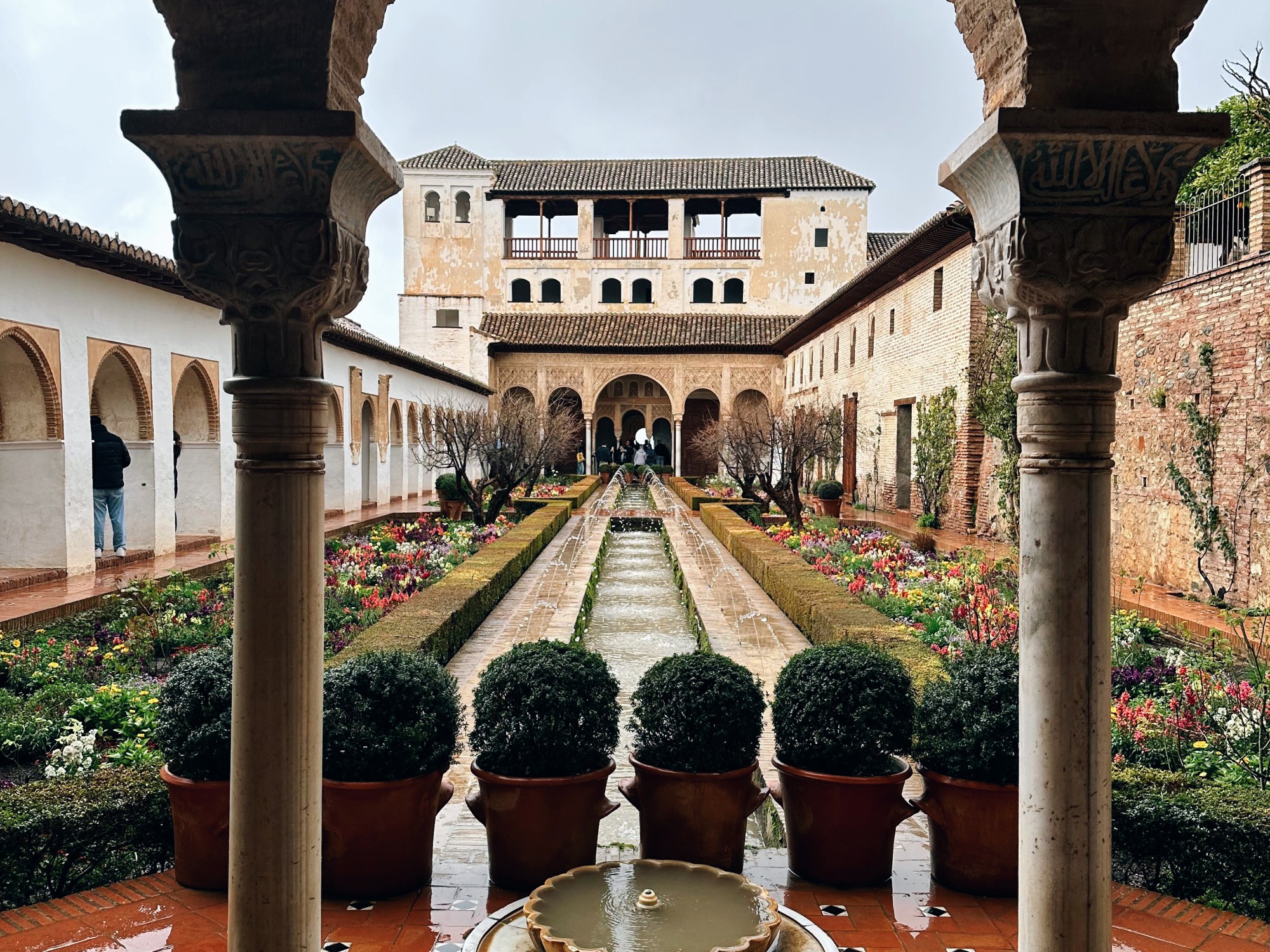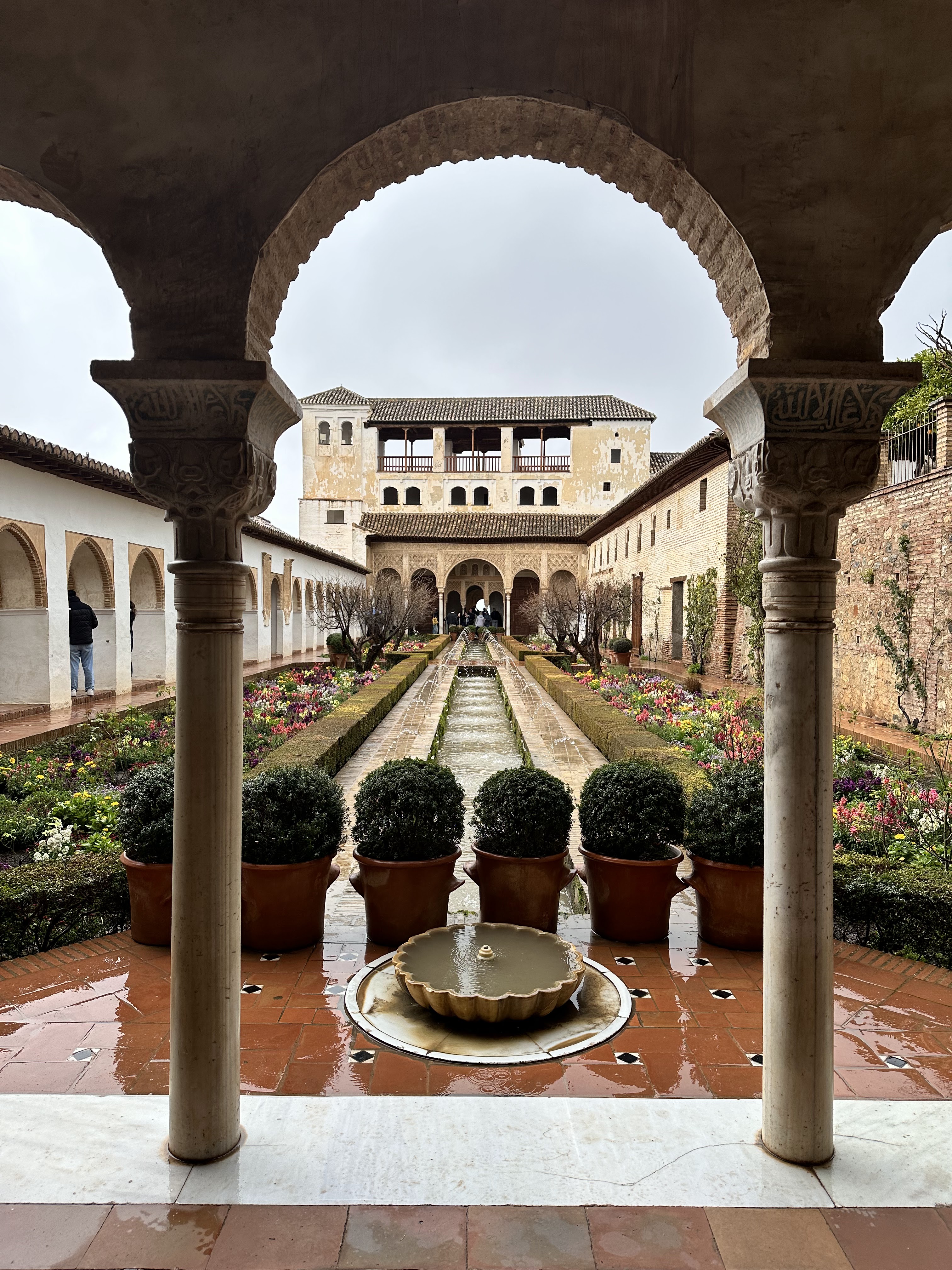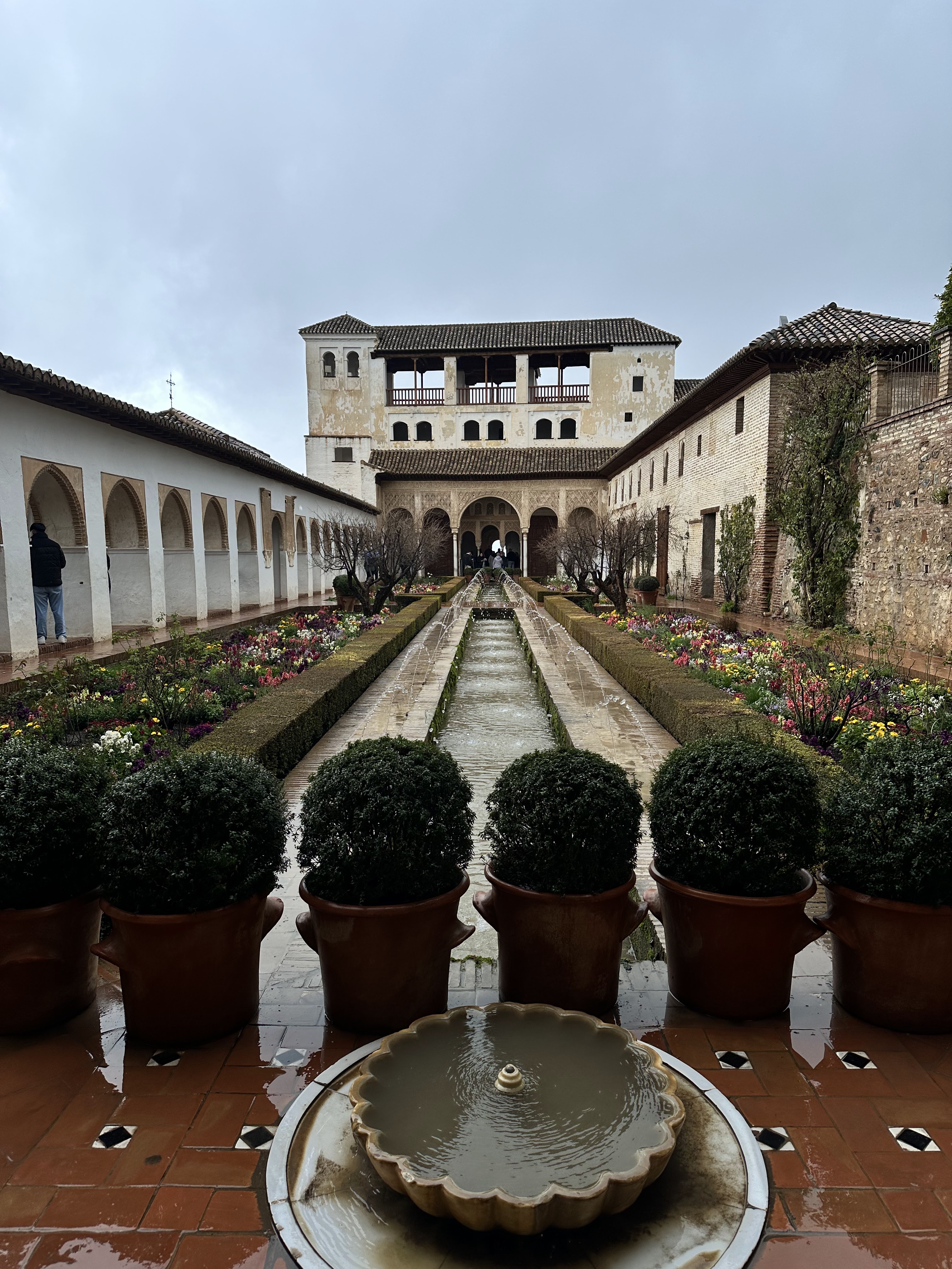 Our journey to Granada began and ended with a five hour bus ride both ways, earliest one out and latest one back. This meant we only booked one night in the hostel and splurged on a private room. While we left Madrid to “escape the rain,” we were greeted with nonstop rain that stayed for the entirety of our trip. Somehow, this has been the case on most of the trips we have made outside of Madrid. However, the rain does not detract from the ornate beauty of the cities I have visited, especially Granada.