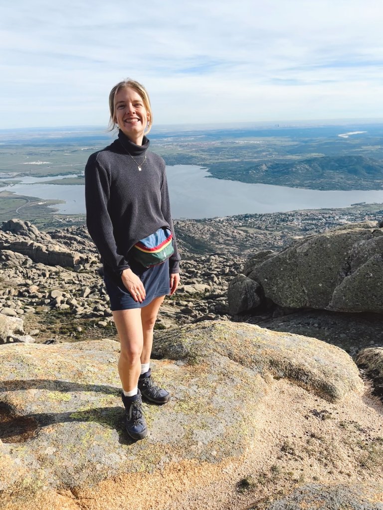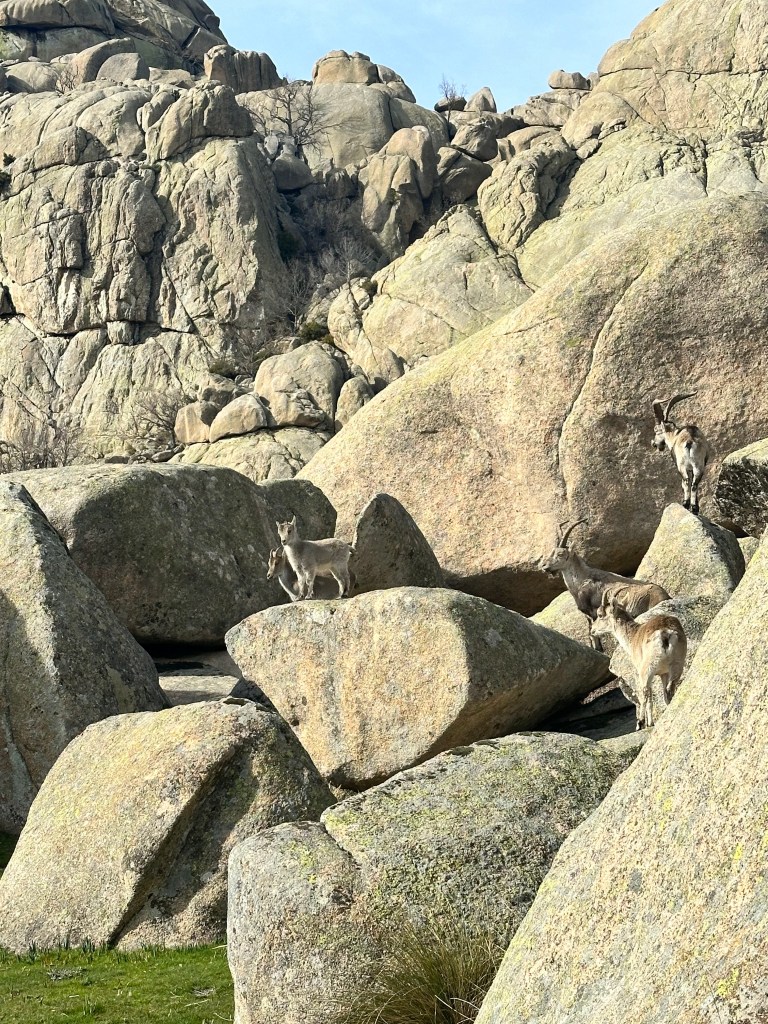 Hiking El Yelmo – short bus ride from the city!Goats!! There were so many of them, we were stunnedWe had to shimmy up through this crevice……and climb through this hole……to reach the top! Don’t let the smile fool you I was very grumpy because the only snack we had was a single clementine. View from the top!
