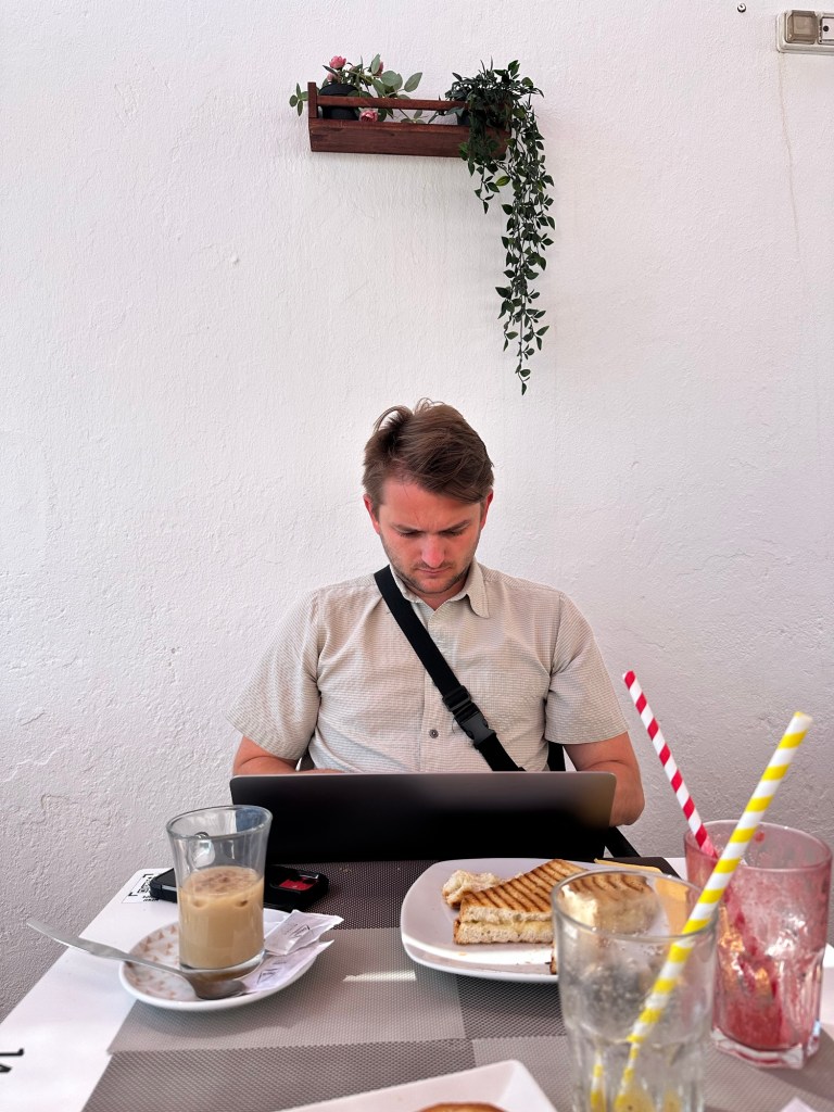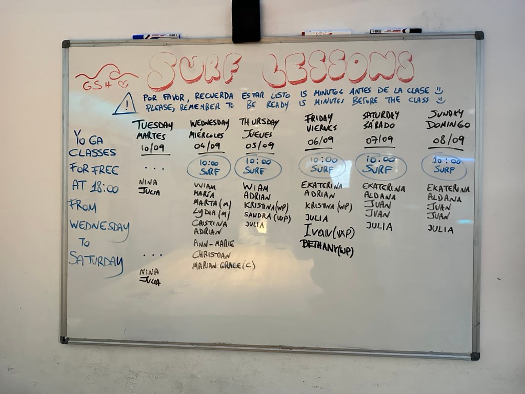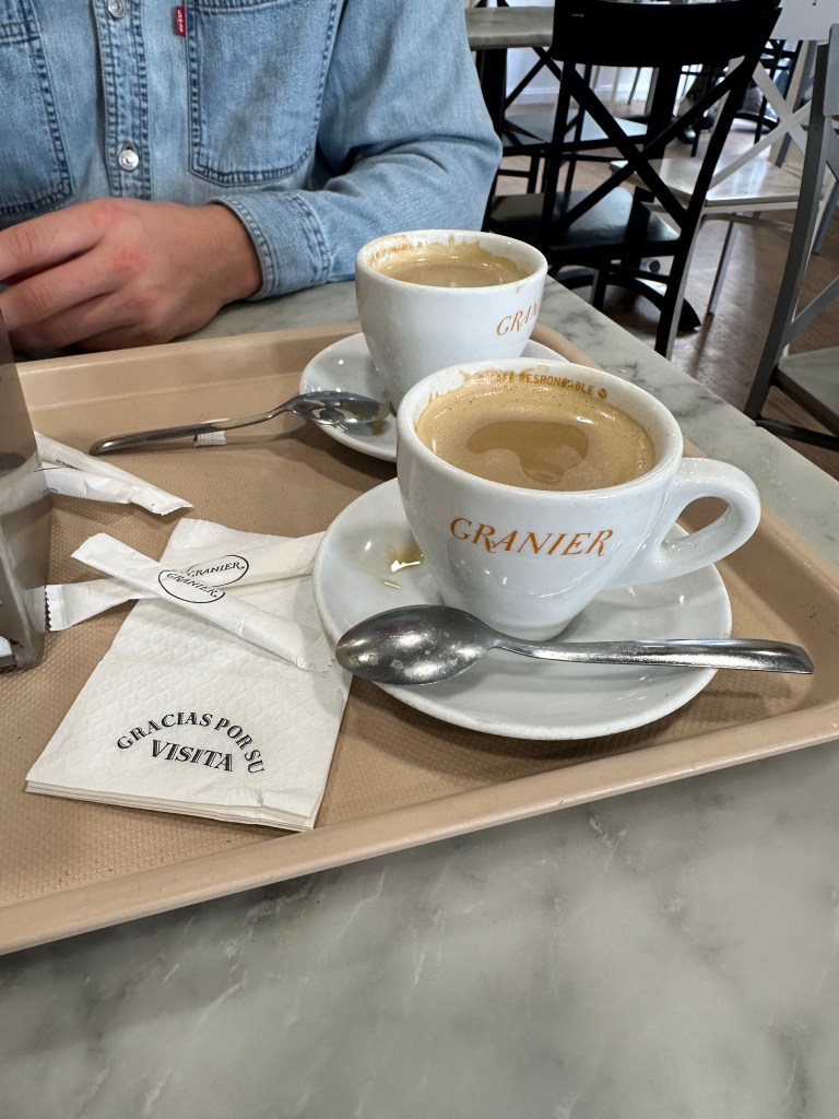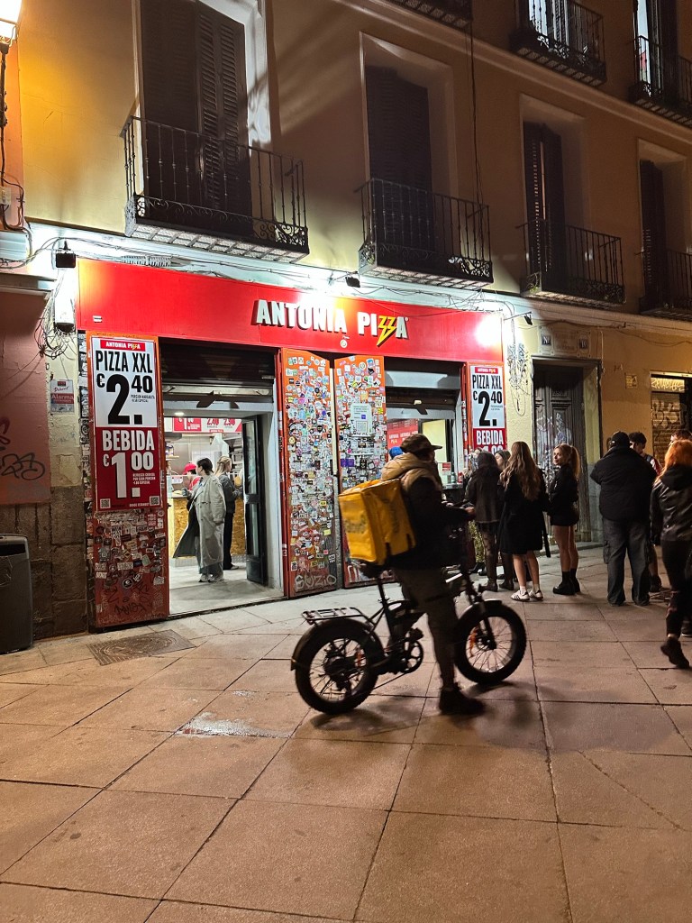 Inside the classroom!Always embracing my inner childBreakfast on the terrace!One of Christian’s many innovative work setupsThank you to my former Pre-K students for the artwork!Plants! Plants! Plants!On a night walk, always enchanted by the buildingsAnother dinner at home!First Museum in MadridMonet at the Thyssen!Another work setup!Another shot in Retiro Park, one of my favorite run spotsBreak at work – food & coffee provided daily!runnin runnin & runnin runnin….like i said, PLANTS!In the home!At a snack shop!One of my favorite dry goods stores!Eggplant Parm!A popular coffee chain in MadridA firehazard?On our fridge 🙂Battling my first Spanish cold, kids still cough with their mouths open hereMy new work bag! I made a friend on the elevator in our apartment because of it!